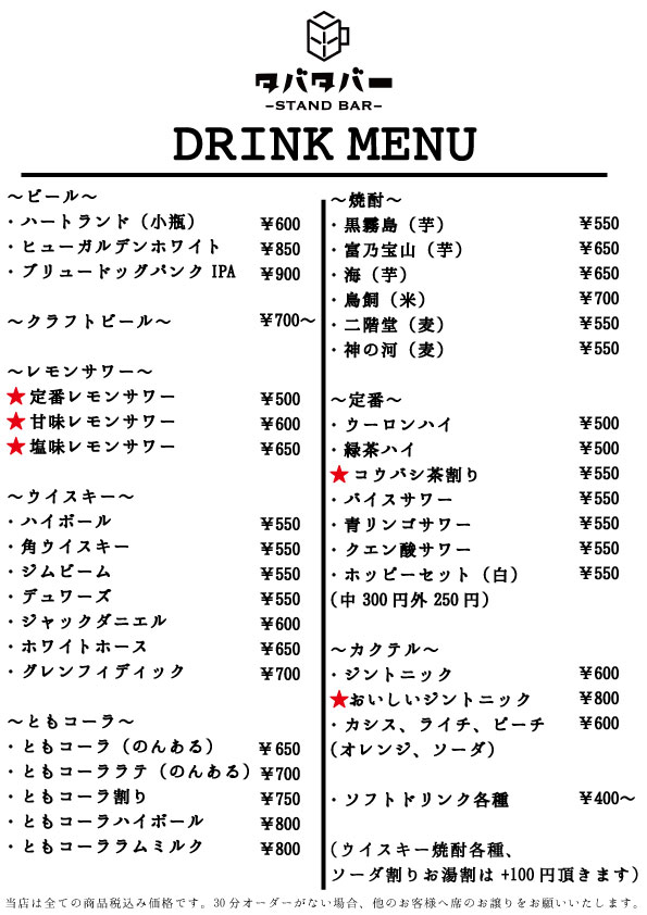 TABATA×BAR 田端の小さな立ち飲み屋